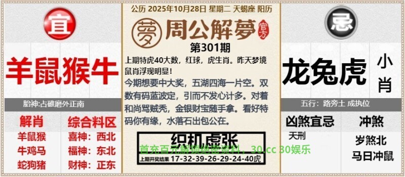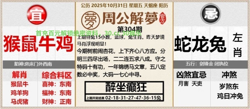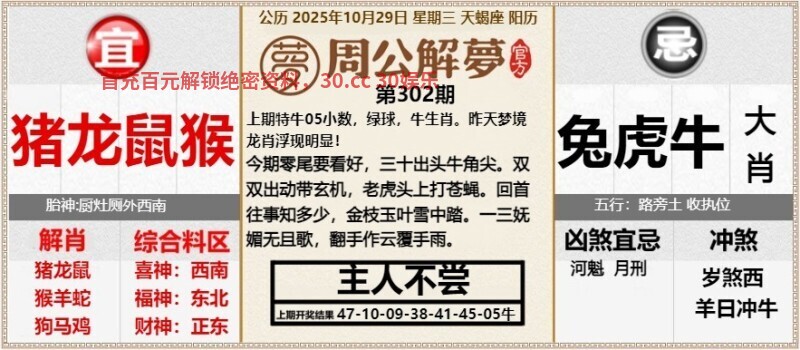 301期:稳杀六码╠01.08.20.32.44.47╣开:牛05准